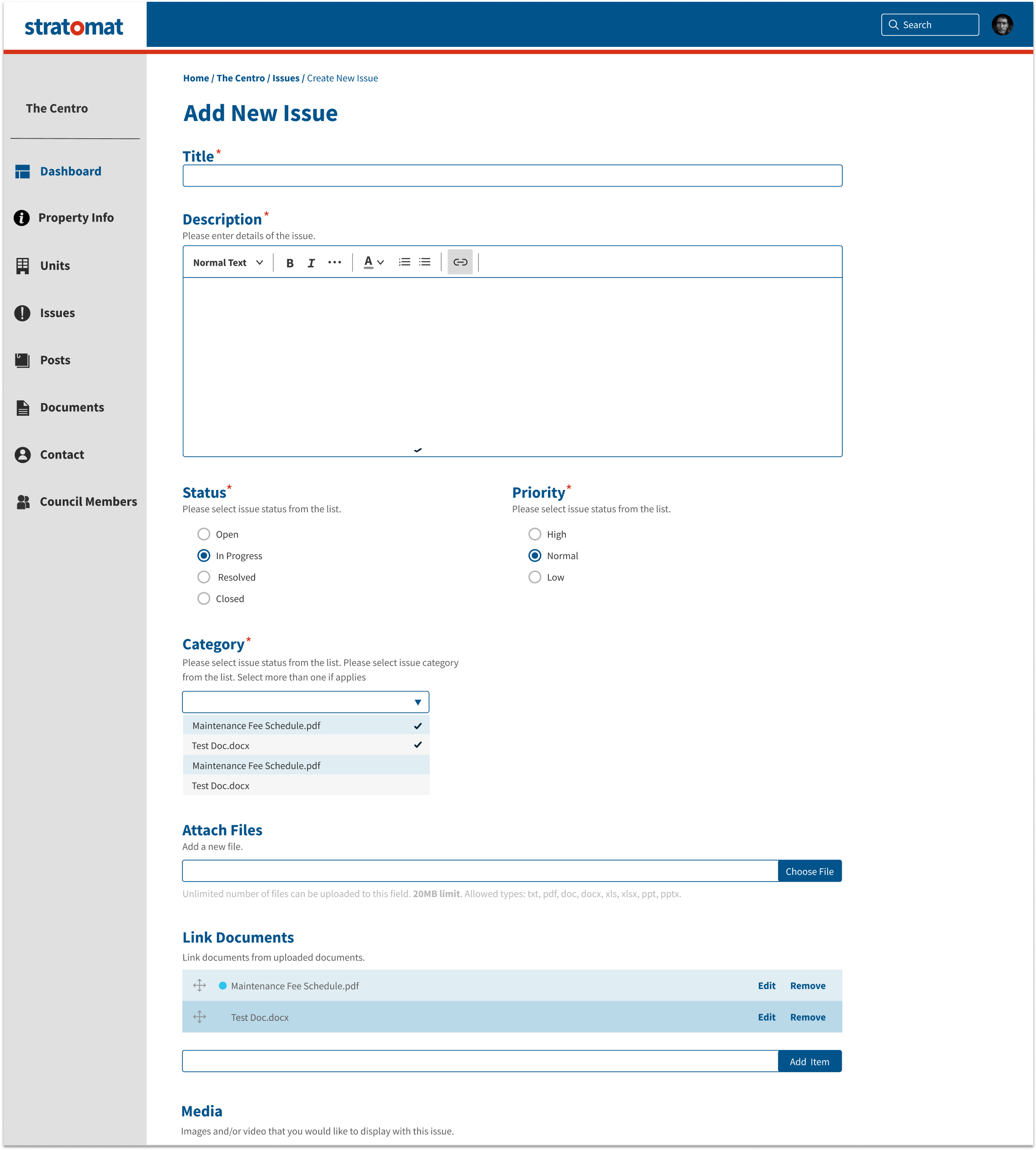 The main technological challenge faced during the development of Stratomat was to create a web-based application that streamlined communication management while also being user-friendly and easy to navigate. The application needed to integrate various components such as user authentication, permissions-based access to file systems and retrieval, real-time messaging, and notifications, all while maintaining a high level of data privacy and security. Additionally, Stratomat needed to be scaleable, so that it could handle increasing user numbers and data volumes, as well as remain flexible to accommodate future upgrades and new features. The goal was to provide a robust and reliable solution that would solve the communication challenges faced by property managers and stratas, while ensuring a seamless user experience for all parties involved.